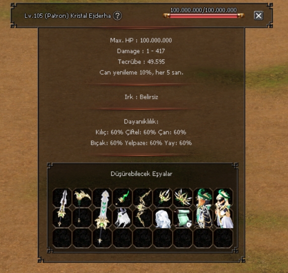 | Zehirleme - Sersemletme - Yavaşlama Şansı | 10 |